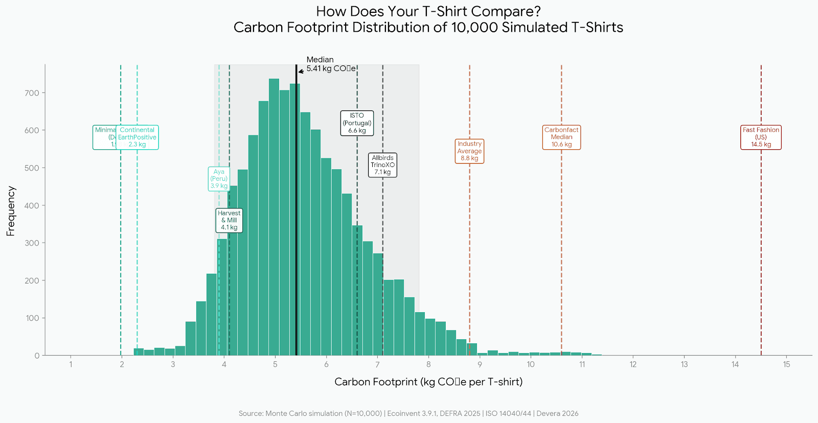 Carbon Footprint of a T-Shirt: Industry Benchmark based on 10,000 simulated lifecycles